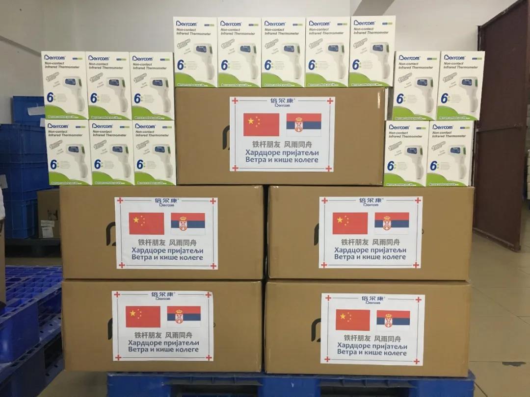 在我國(guó)疫情減緩時(shí)期,倍爾康也加入了援助國(guó)際社會(huì)的行動(dòng)上,為塞爾維亞、巴拿巴等國(guó)家捐贈(zèng)了體溫計(jì)。